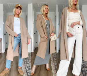 So many ways to style this coatigan. Here are three looks to try this fall.