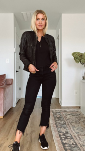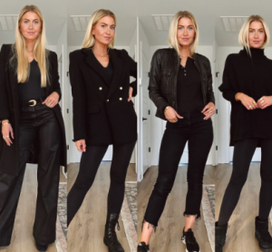 Halloween is right around the corner. Here are four all black trick or treating looks to try this season. Alternative title: Four all black outfits to wear while carrying your kids’ candy up and down the neighborhood.