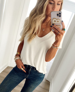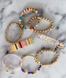 I’m loving colorful bracelets right now. I’ve gotten a few new ones in over the past few months and love the look of them all stacked together. I also like adding a few solid gold ball bracelets to break up the colors a bit.