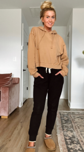 The perfect on-the-go outfit, featuring a comfy hoodie and my cozy joggers. This is the ultimate comfort outfit, and I love the effortless vibe of it.