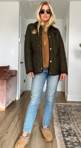 This quilted coat is one of my absolute favorite finds this fall, and it goes perfectly with these UGGs. I paired this jacket with my camel half-zip pullover and light wash denim. (These jeans have been a favorite for several years now.)